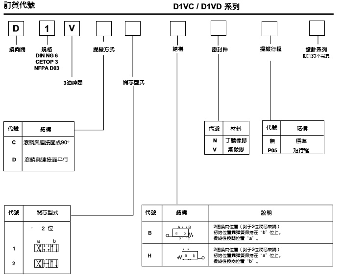 PARKER換向閥D1VC/D1VD系列訂貨號: