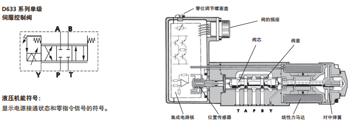系列屬于直動式伺服控制閥,可應用于三通、四通和2*2通的節流型流量控制閥。適用于電液位置、速度、壓力或力控制系統以及其他需要高動態響應的系統。D633系列伺服閥無需先導油源,通過具有高驅動力的永磁式線性力馬達直接驅動,具有電氣零位調節功能,當斷電或電纜損壞或緊急停車時,閥芯會無需使用外力自動返回到其彈簧對中位置。